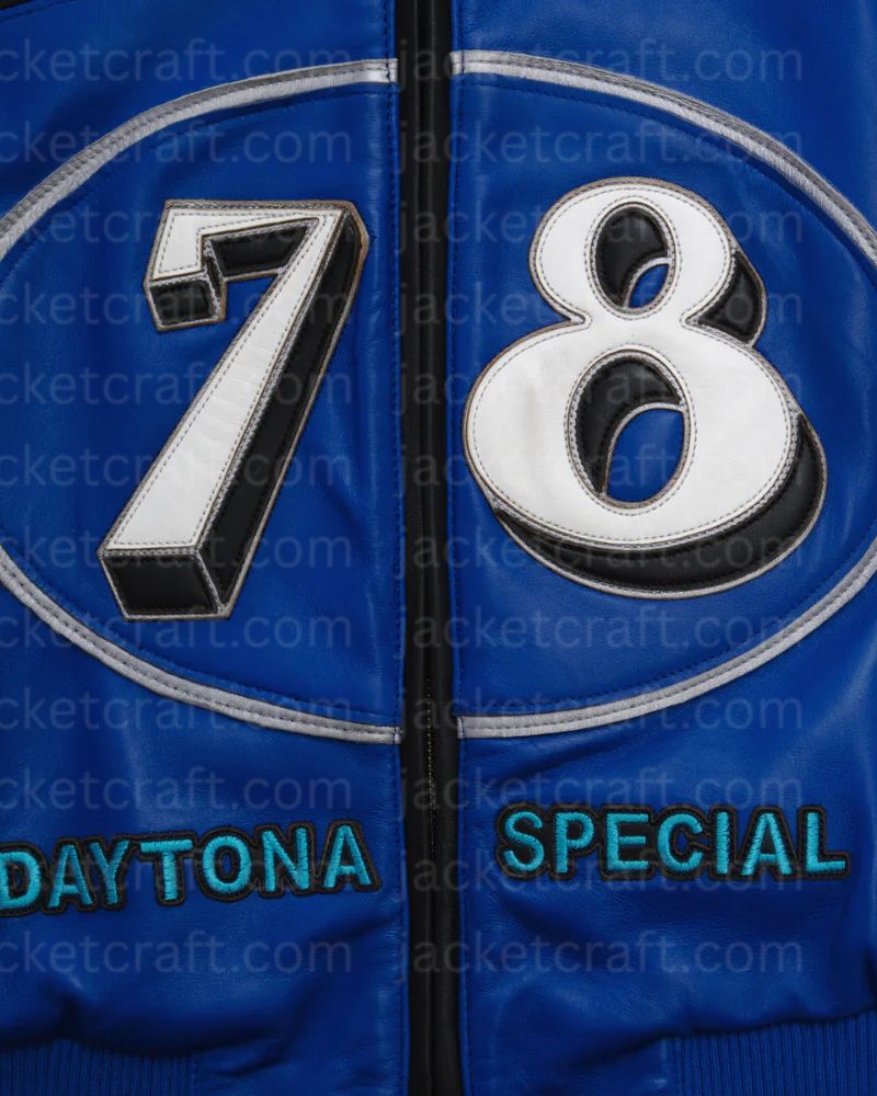 The Daytona race car culture was a major source of inspiration for our design. We see large scale graphics, in depth patches, and the tell tale Pelle Pelle branding. It is these small elements which really pull the look together. Also the stitching is very clean and robust which at once gives it style and durability. Also because of that this jacket has a very high quality feel and really stands out.