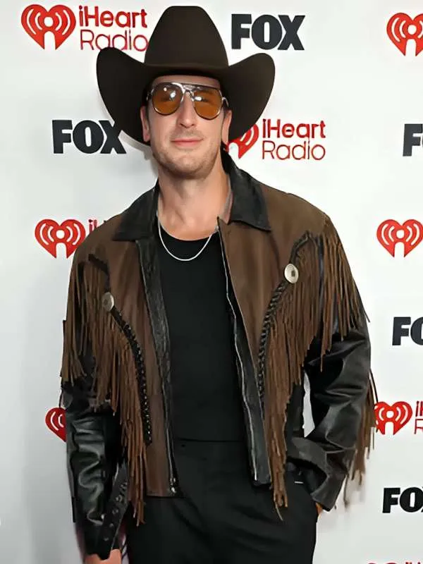 The Russell Dickerson Fringe Jacket stands out because of its detailed fringe design and high-quality craftsmanship by Jacket Craft. Moreover, it blends classic western style with a modern touch.