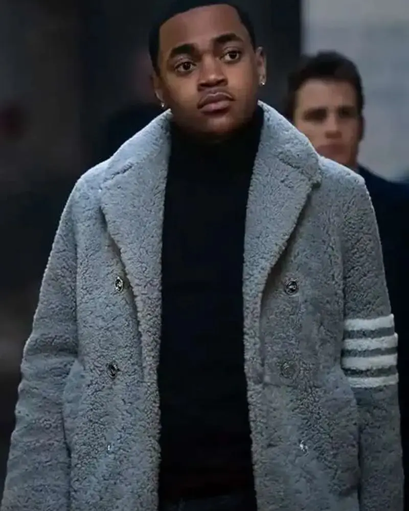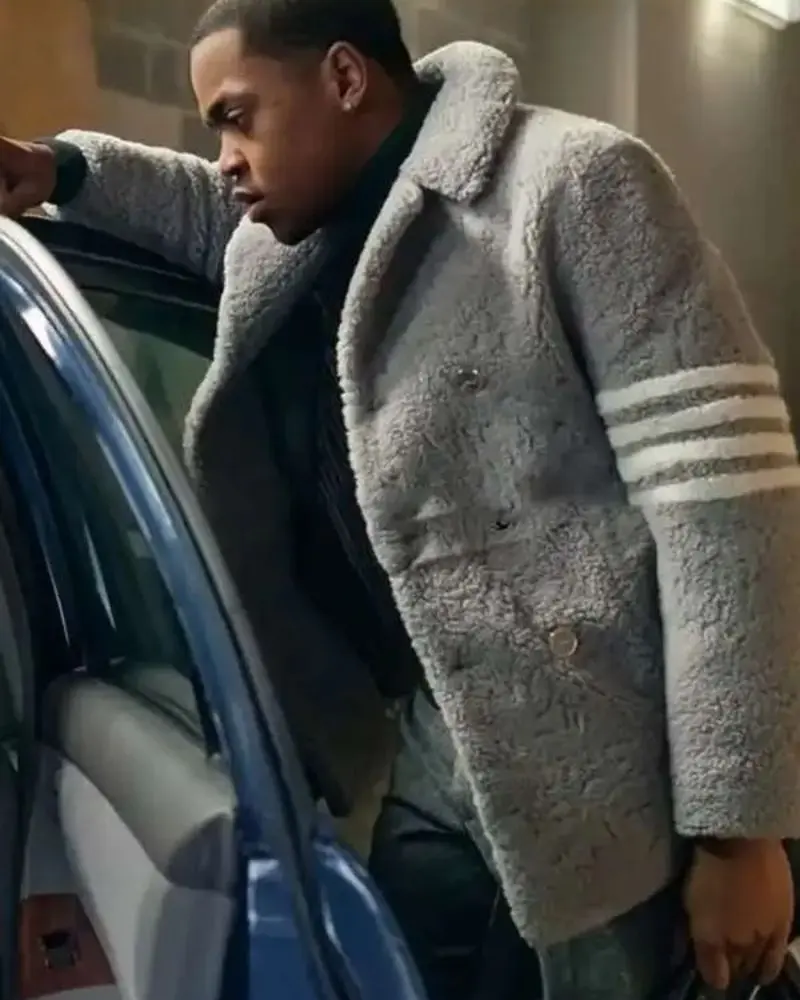 Ghost S03 Tariak St. Patrick Michael Rainey Jr. Shearling Coat which is an interpretation of the sharp, modern look from Power Book II: Ghost. Worn by Michael Rainey Jr. as Tariak St. Patrick this coat projects confidence, luxury, and contemporary street style.