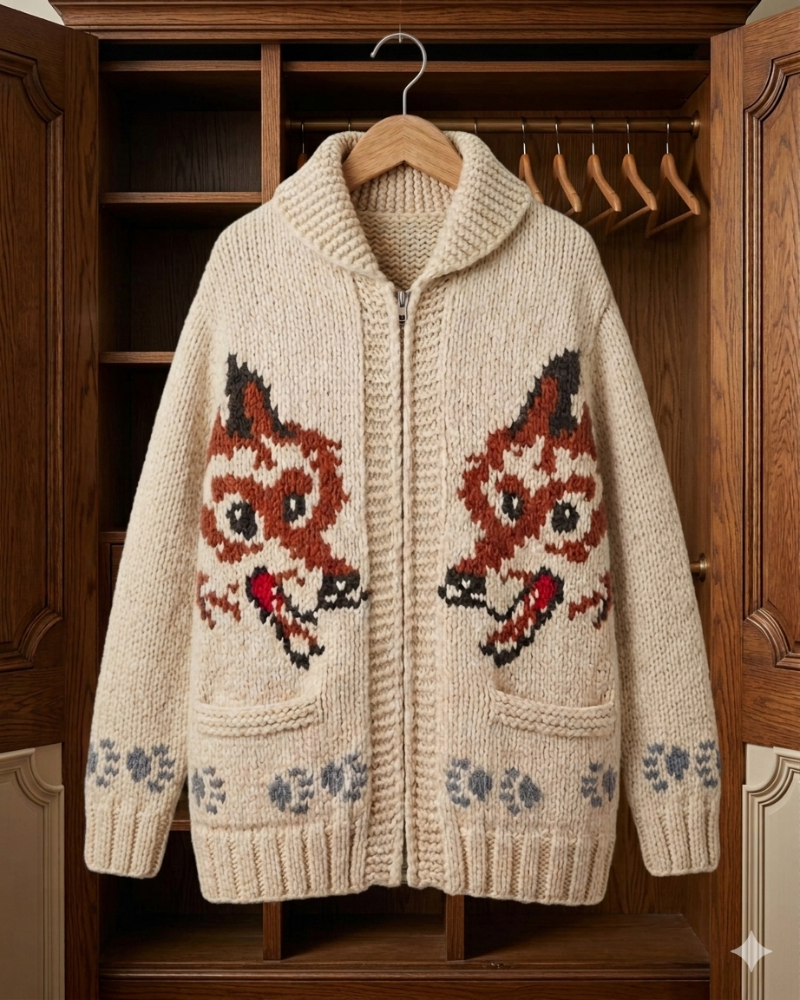 “This Wolf Cardigan combines comfort and style with a lightweight knit, perfect for layering while keeping a clean, fashionable look.”